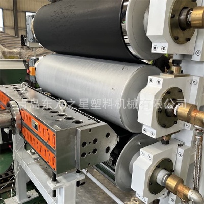 A lapformázás minősége kulcsfontosságú. Ezt felszereltükSPVC állattartó szőnyeg gyártósorvállfa-stílusú gradiens flow formával. A formaüreg tükrös krómozott, és finoman állítható vágóperemmel rendelkezik, amely biztosítja az olvadt műanyag egyenletes terjedését. Az ezt követő háromhengeres kalanderezési rendszer lehetővé teszi az egyes hengerek független hőmérséklet-szabályozását, a hengerfelületek edzettek és polírozottak, így kivételesen sima, egyenletes vastagságú lapok keletkeznek. Az extrudálástól a végső tekercselésig ez az SPVC rugalmas lemezberendezés teljes automatizálást ért el, magas hatékonyságot és nagyobb termékkonzisztenciát biztosítva.