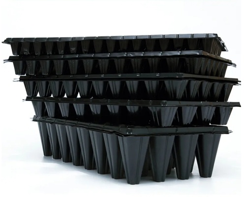 Teljesen automatizált palántatálca berendezésa folyamatos melegsajtolás és a hidraulikus lyukasztás intelligens kombinációját használja. A körülbelül 300–320 mm széles és 0,8–2 mm vastag műanyag lapot egy szervomotor táplálja a fűtési zónába. Ott egy távoli infravörös kerámia fűtőtest melegíti fel a megfelelő hőmérsékletre. Ezután 100 tonna hidraulikus erővel egy mozdulattal formába préselik egy 400×600 mm-es területen. A beépített hűtőrendszer gyorsan alakítja a formát, majd automatikusan kilyukasztja és levágja. Összességében percenként 15-20 tálcát tud készíteni.